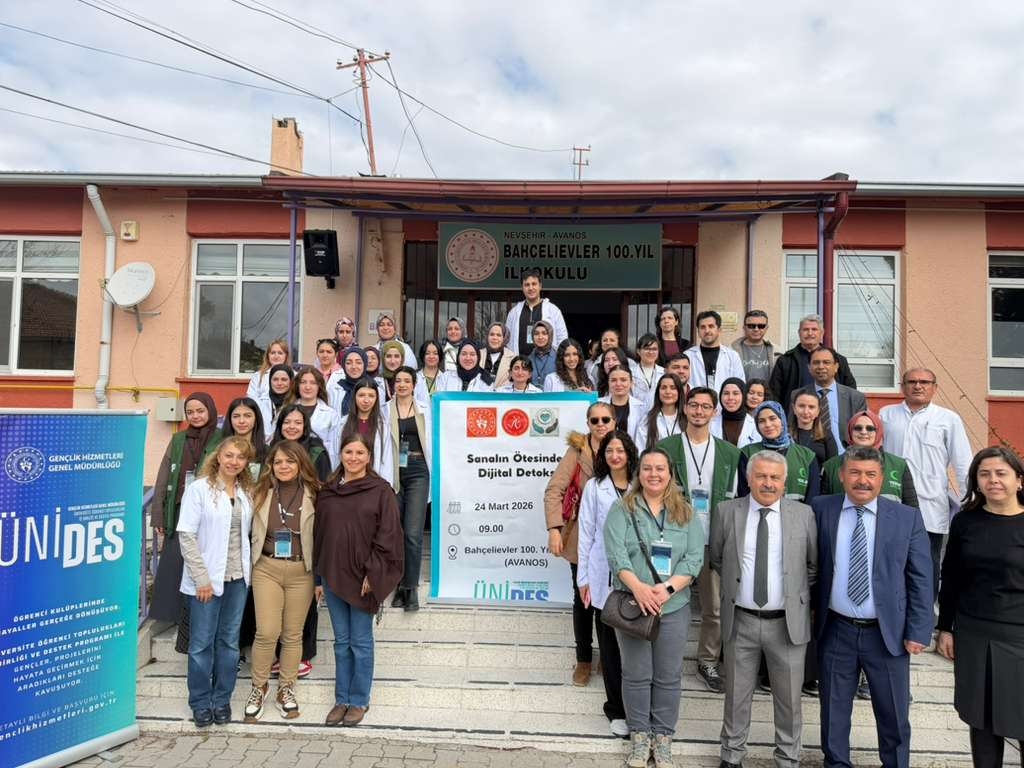 Nevşehir Hacı Bektaş Veli Üniversitesi (NEVÜ) Sağlıklı Yaşam Kulübü tarafından yürütülen ve T.C. Gençlik ve Spor Bakanlığı Üniversite Öğrenci Toplulukları İş Birliği ve Destek Programı (ÜNİDES) kapsamında desteklenen “Sanalın Ötesinde Dijital Detoks” projesi başarıyla tamamlandı. Proje kapsamında ilkokul öğrencilerinin dijital bağımlılıkla mücadelesine katkı sağlanarak sağlıklı yaşam bilincinin artırılması hedeflendi.