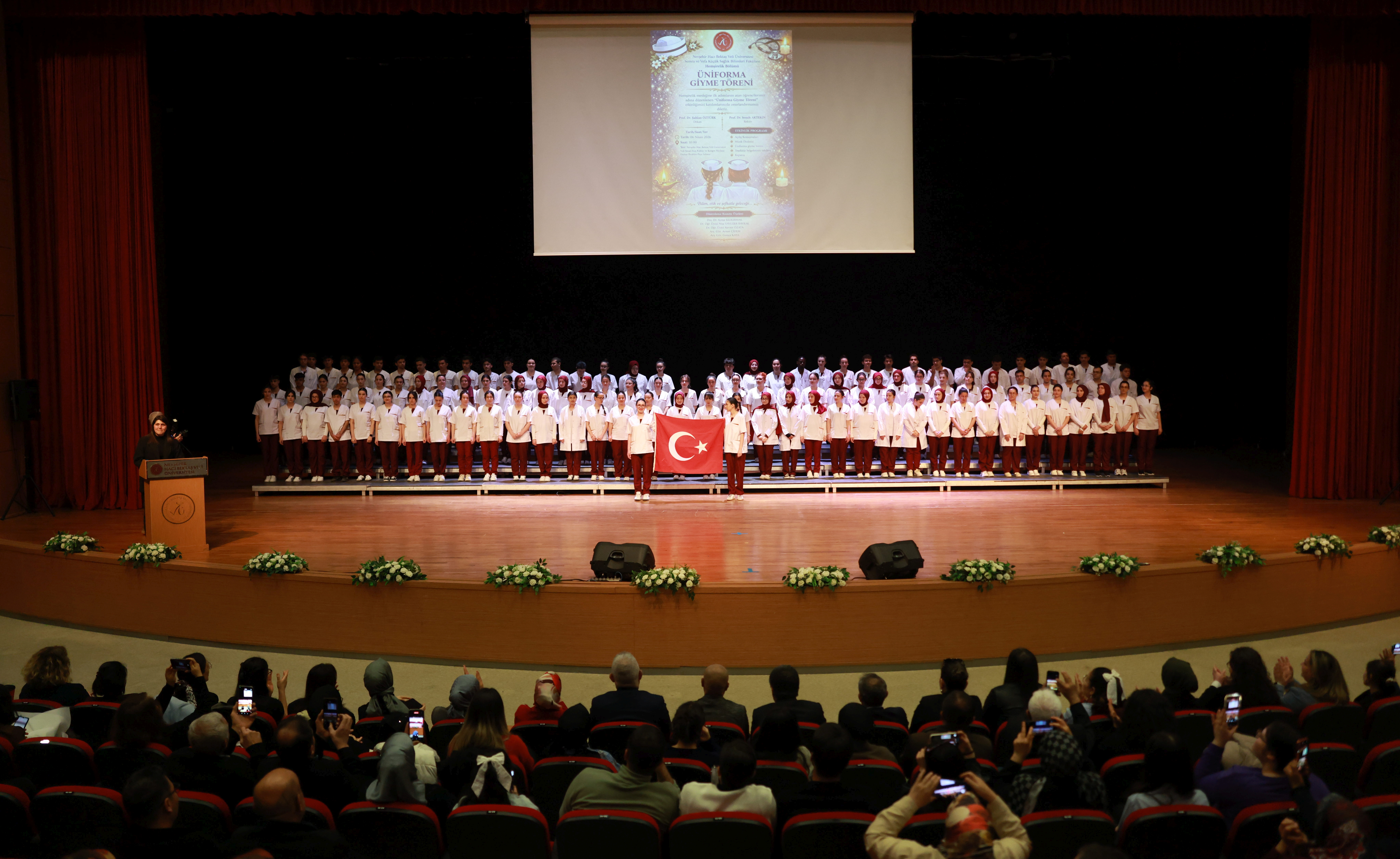 Nevşehir Hacı Bektaş Veli Üniversitesi (NEVÜ), Semra ve Vefa Küçük Sağlık Bilimleri Fakültesi Hemşirelik Bölümü birinci sınıf öğrencileri için düzenlenen “Üniforma Giyme Töreni” ile genç sağlıkçıların meslek hayatına attıkları ilk adımı kutladı. Vali Şinasi Kuş Kültür ve Kongre Merkezi’nde gerçekleşen törene üniversite yönetimi, akademik personel ve çok sayıda aile katılarak öğrencilerin mutluluğuna ortak oldu.