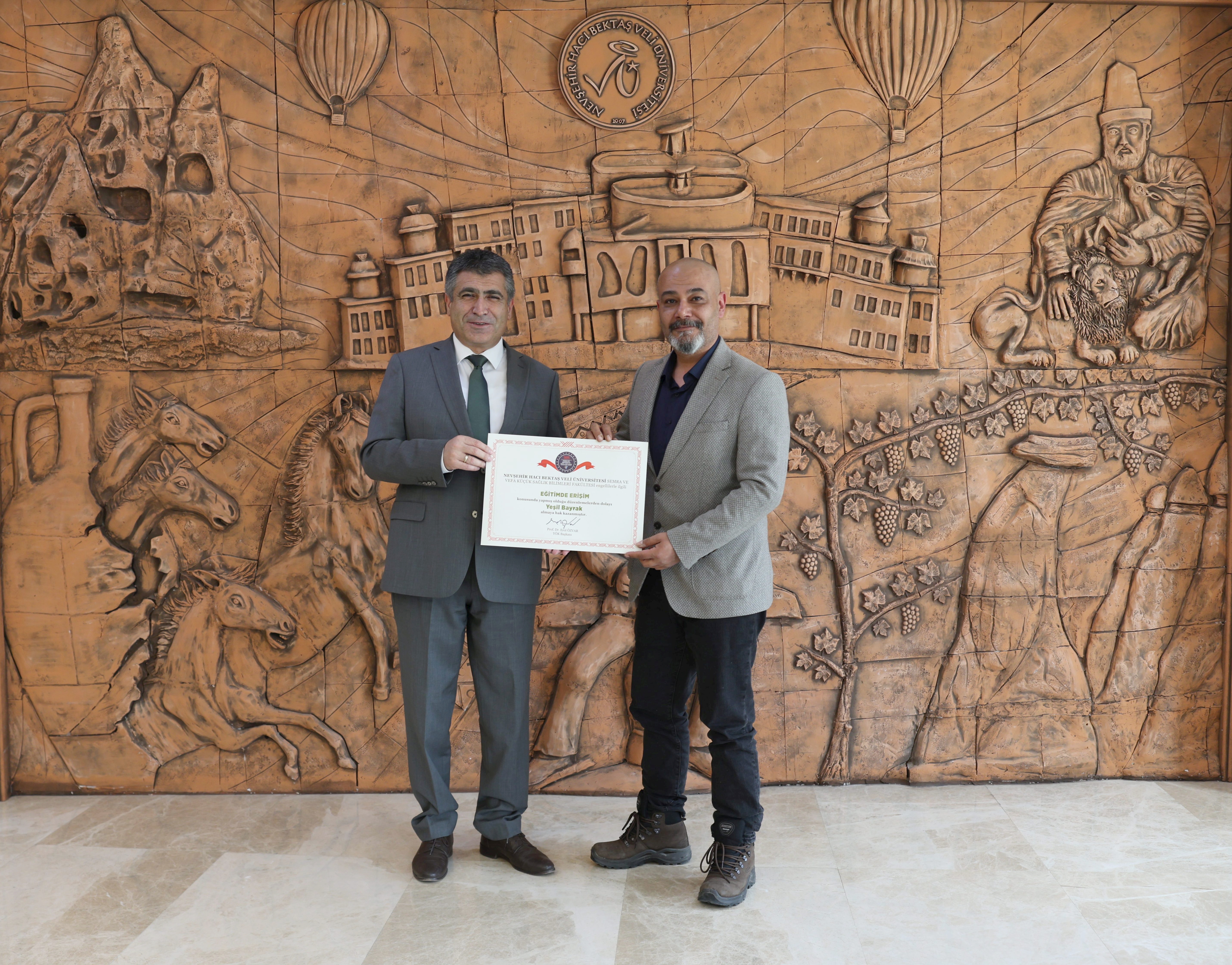 NEVÜ Rektörlük Makamında düzenlenen törene; Rektör Prof. Dr. Semih Aktekin’in yanı sıra Rektör Yardımcıları Prof. Dr. Bayram Deviren ve Prof. Dr. Mutluhan Akın, Eğitim Fakültesi Dekanı Prof. Dr. Mustafa Tahiroğlu, Semra ve Vefa Küçük Sağlık Bilimleri Fakültesi Dekanı Prof. Dr. Şahlan Öztürk, Sağlık Hizmetleri Meslek Yüksekokulu Müdürü Doç. Dr. Kamuran Özdil, Derinkuyu Emineana ve Yaşar Ertaş Tarım ve Hayvancılık Meslek Yüksekokulu Müdürü Dr. Öğr. Üyesi Coşkun Aslan, Engelsiz Üniversite Birim Koordinatörü Dr. Öğr. Üyesi Pınar Demiryürek ve Genel Sekreter Nihat Çavuşoğlu katıldı.