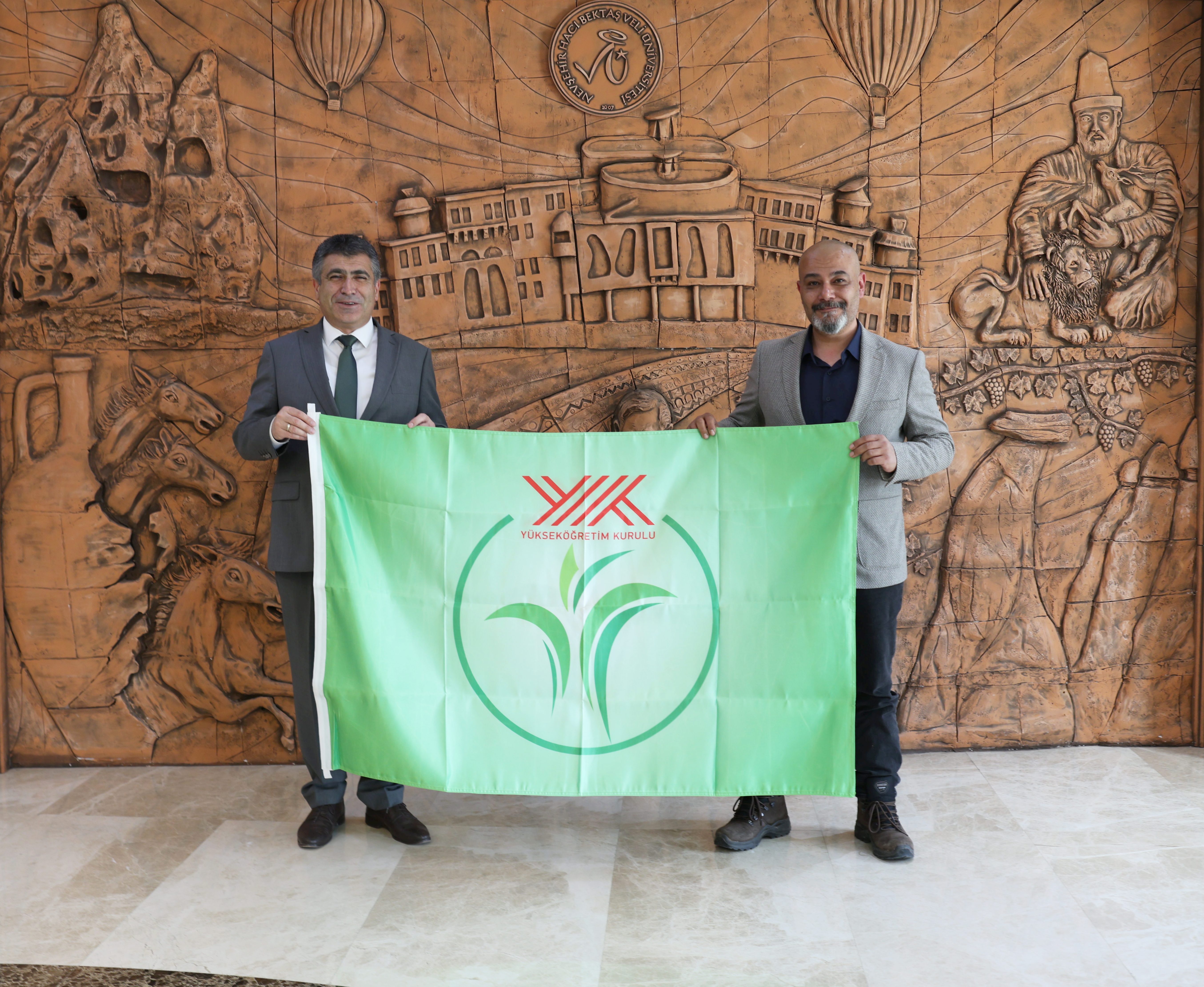 Nevşehir Hacı Bektaş Veli Üniversitesi (NEVÜ) Rektörü Prof. Dr. Semih Aktekin, Yükseköğretim Kurulu (YÖK) tarafından “2025 Engelsiz Üniversite Ödülleri” kapsamında NEVÜ’ye gönderilen bayrak ve belgeleri düzenlenen törenle akademik birimlere teslim etti.